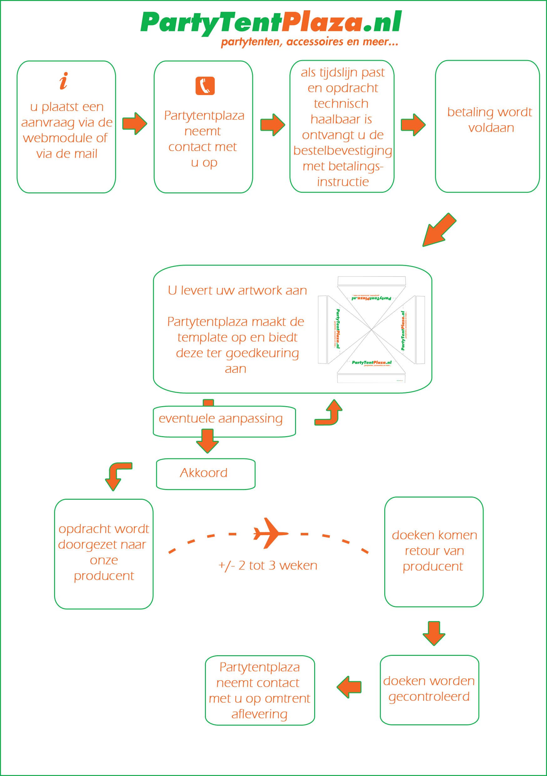 Wat is de route bij het bedrukken van een Easy Up scharniertent?